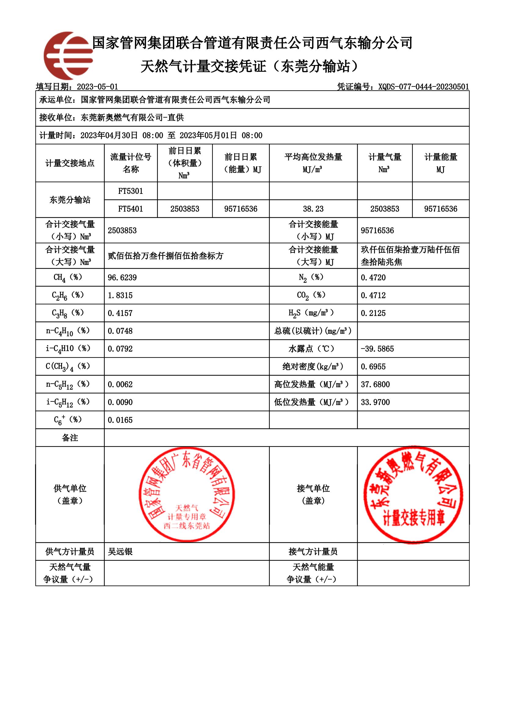 東莞新奧燃氣2023年5月份供氣質量檢查報告公示