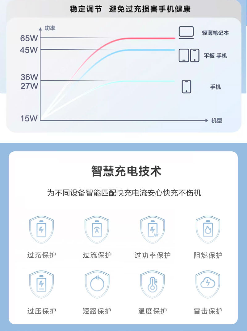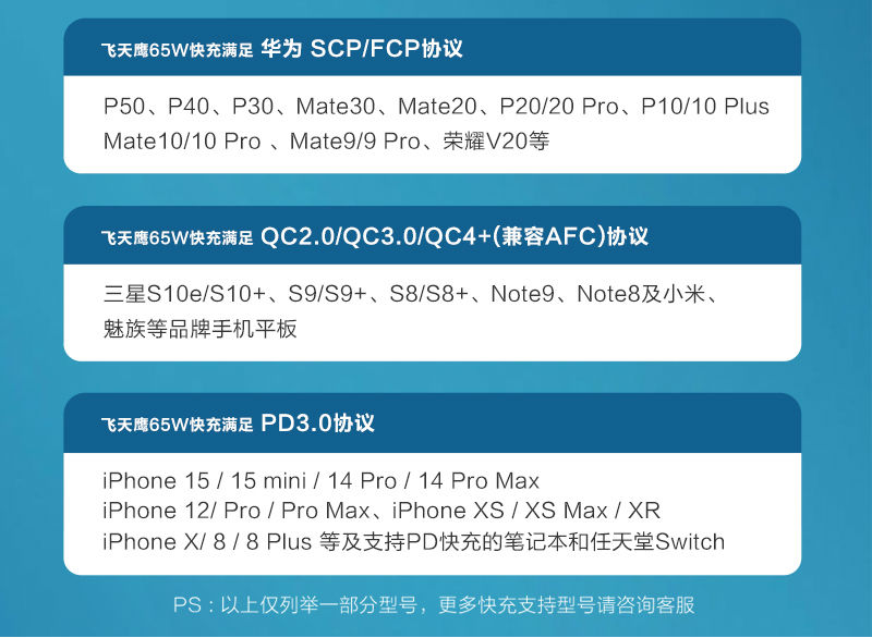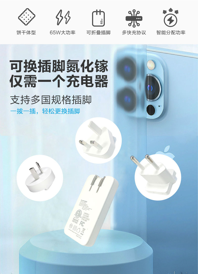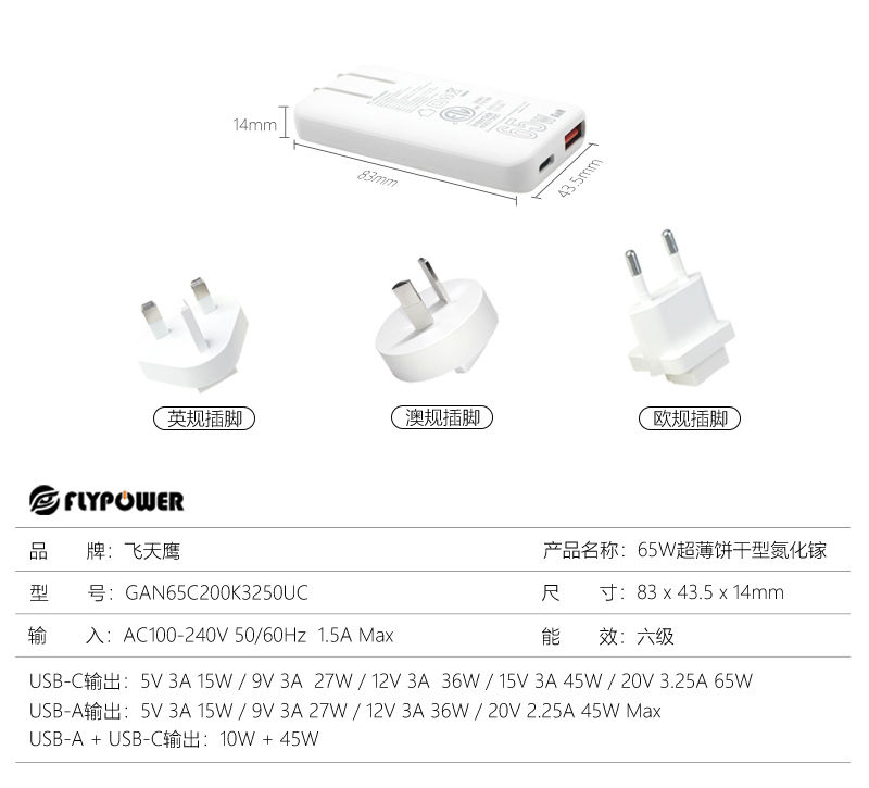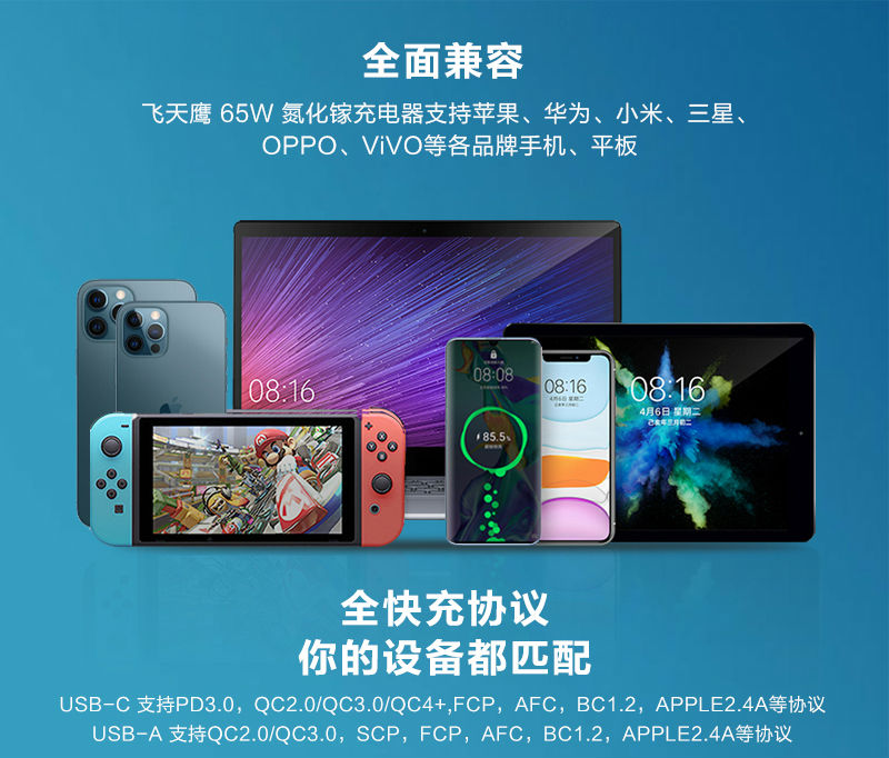 飛天鷹65W超薄氮化鎵充電器支持蘋果、華為、小米、三星、OPPO、VIVO等各品牌手機(jī)和平板