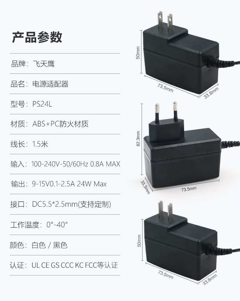 產(chǎn)品插腳:中規(guī) 美規(guī) 歐規(guī)