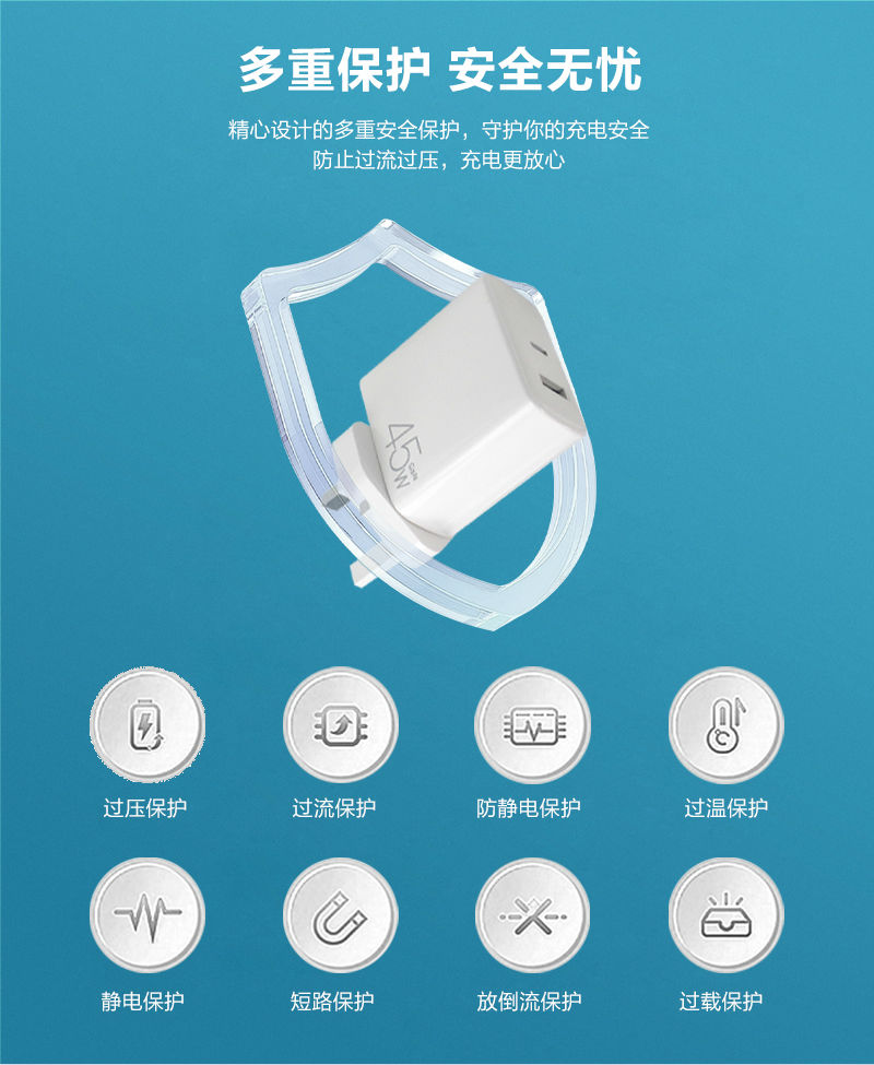飛天鷹45W氮化鎵充電器支持蘋果、華為、小米、三星、OPPO、VIVO等各品牌手機(jī)和平板