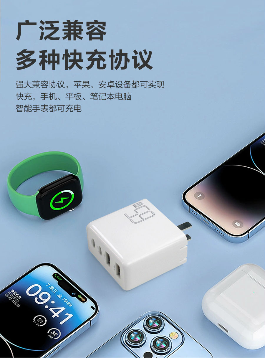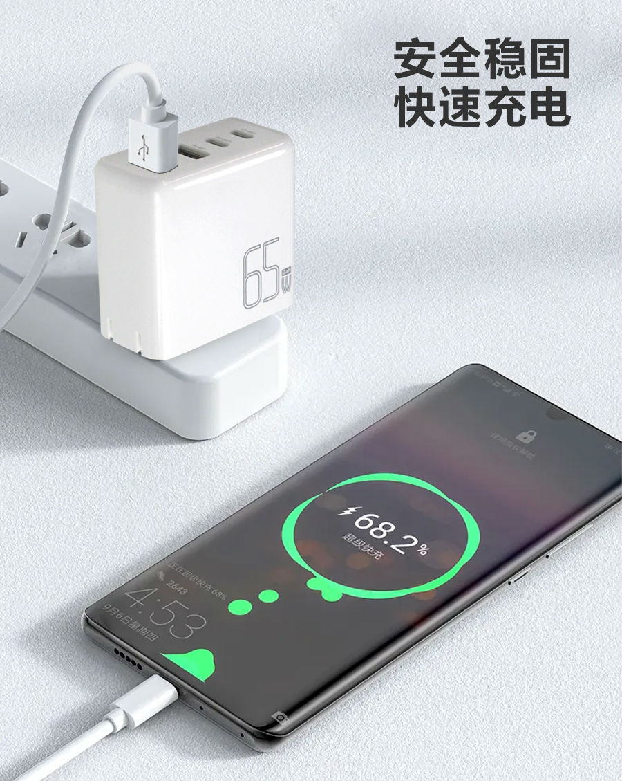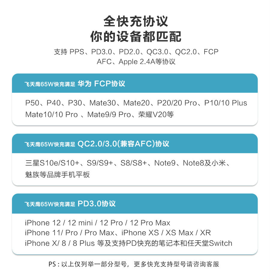 飛天鷹65W氮化鎵充電器支持蘋果、華為、小米、三星、OPPO、VIVO等各品牌手機(jī)和平板