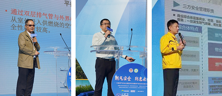 活動(dòng)中,相關(guān)燃?xì)鈱?zhuān)家為觀眾科普了日常生活中的安全用氣注意事項(xiàng)。針對(duì)商業(yè)綜合體建筑結(jié)構(gòu)復(fù)雜、用氣點(diǎn)分散、業(yè)態(tài)多樣化、人員密集等特點(diǎn),公司HSE賦能群召集人姜鑫詳細(xì)講解了商業(yè)綜合體的燃?xì)馊粘0踩芾恚鈫挝弧⑽飿I(yè)管理部門(mén)和用氣單位三方各自的安全管理職責(zé),以及燃?xì)馔话l(fā)事件的應(yīng)急處置關(guān)鍵舉措。