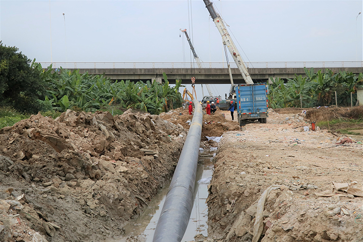 但水鄉(xiāng)片區(qū)地下水位高,地質(zhì)松軟,給敷設(shè)工程帶來了不小的困難。“挖好的管道溝還沒來得及放下鋼管就被下沉的淤泥覆蓋了,我們只能邊挖邊用鋼板在兩側(cè)加固,管道才能順利敷設(shè)。”東莞新奧工程技術(shù)管理部相關(guān)負(fù)責(zé)人介紹,整個項(xiàng)目全長14公里,3次橫穿公路,5次穿越河涌。為了減少對地貌和交通的影響,工程組靈活使用定向鉆穿越、頂管及直埋敷設(shè)施工方法。