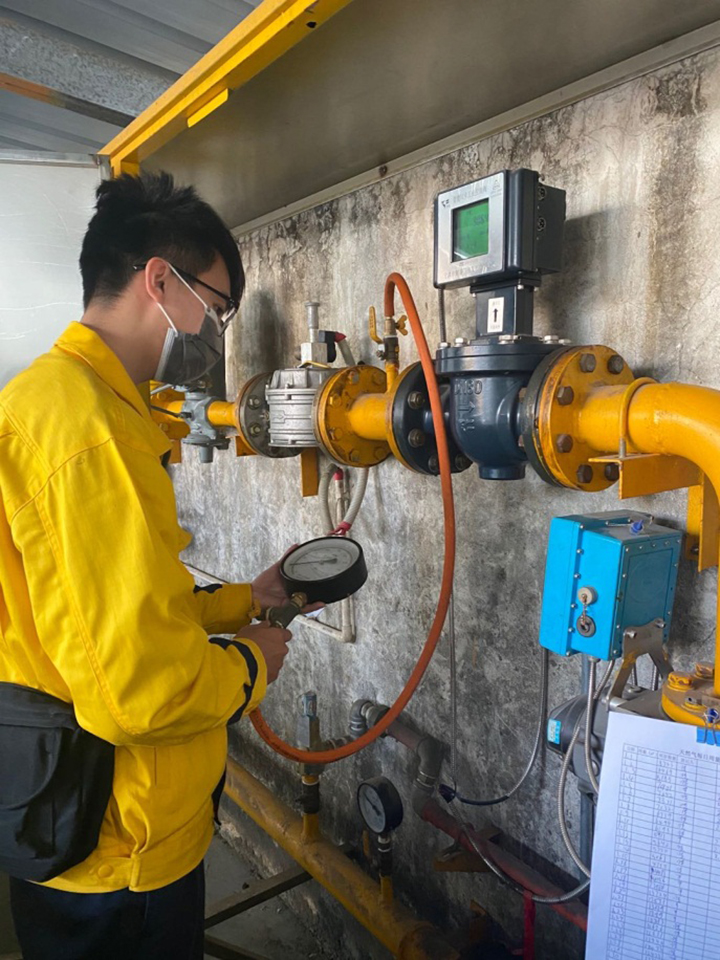 按照往常,這項工作需要3-4個人用一整天時間才能完成。考慮到當?shù)丶毙栌眠@批房間作為隔離場所,盧森與林榮虎計劃輪流作業(yè),用半天時間就完成置換通氣工作。在長達4小時的不間斷作業(yè)中,盧森與林榮虎配合默契,分工明確,細致的做好換表、保壓、記錄、測試等工作,順利完成了任務,也確保了通氣質(zhì)量。面對他人的稱贊,盧森卻覺得不足掛齒,“我們沒有考慮太多,用戶的需求就是命令,這是我們的本職工作”。