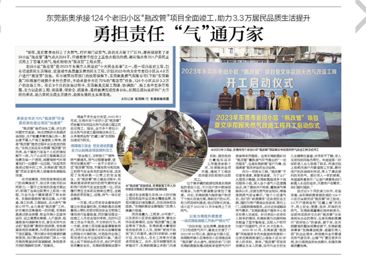 《東莞日報》專題報道 | 124個項目全面竣工!東莞新奧助力老舊小區“瓶改管”圓滿落地