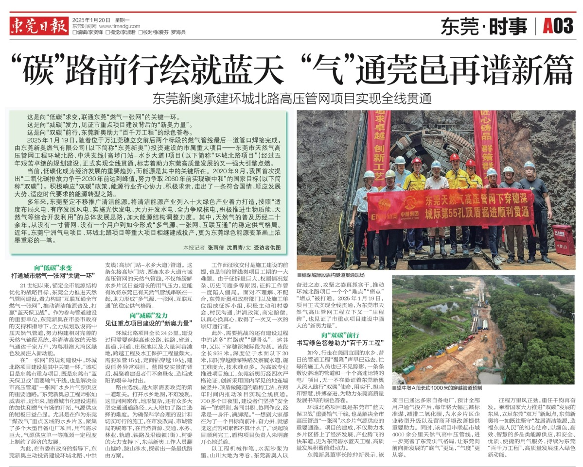 《東莞日報》專題報道 | 東莞新奧承建環城北路高壓管網項目實現全線貫通