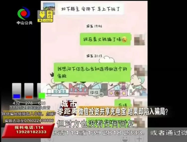 白小姐在閨蜜的推薦下,在微信上加入了一個(gè)共享充電寶的投資項(xiàng)目。白小姐說(shuō),當(dāng)時(shí)對(duì)方表示這個(gè)投資項(xiàng)目他們負(fù)責(zé)代管營(yíng)運(yùn),投資者只需要“坐等收益”,于是她在微信上向客服轉(zhuǎn)賬450元,對(duì)方把她拉入了一個(gè)“收益群”,從第二天開(kāi)始白小姐就在“收益群”里嘗到了甜頭。白小姐 12月1日投的,2號(hào)就開(kāi)始收益,大概收到6號(hào)吧,然后就沒(méi)有了,就收了5天收回了150元,損失了300元。