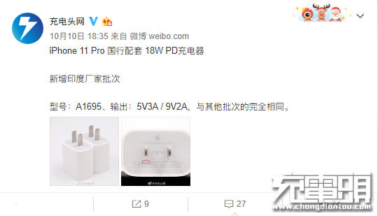 近期,充電頭網(wǎng)發(fā)現(xiàn)國(guó)行iPhone11 Pro系列手機(jī)中標(biāo)配的18W PD電源適配器新增印度制造版本,其型號(hào)為A1695,輸出5V3A / 9V2A,與其他代工廠生產(chǎn)的電源適配器的完全相同。 此舉動(dòng)預(yù)示蘋果開始在印度生產(chǎn)配件類產(chǎn)品。