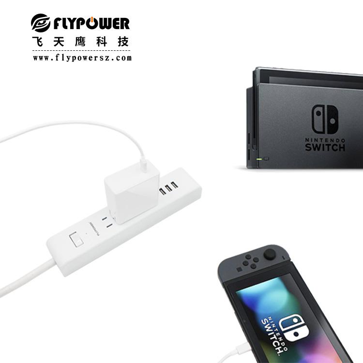 由于任天堂Switch并沒有國行版,許多玩家會選擇購買港版的Switch,由于充電器的插頭不一樣,所以大家在購買時還需要購買一個轉(zhuǎn)換插頭。飛天鷹PD電源生產(chǎn)廠家建議大家也可以選擇飛天鷹研發(fā)生產(chǎn)的45Wtype-c PD充電器,除了可以適配Switch快充以外,還可以給像Iphone8/8plus/X、Macbook等其它支持PD和QC快充的設備進行快速充電。
