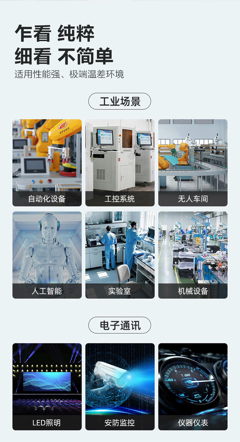 適用于LED拼接顯示屏、自動(dòng)化設(shè)備、工控系統(tǒng)、無(wú)人車(chē)間、人工智能、實(shí)驗(yàn)室、機(jī)械設(shè)備、LED照明、安防監(jiān)控、儀器儀表