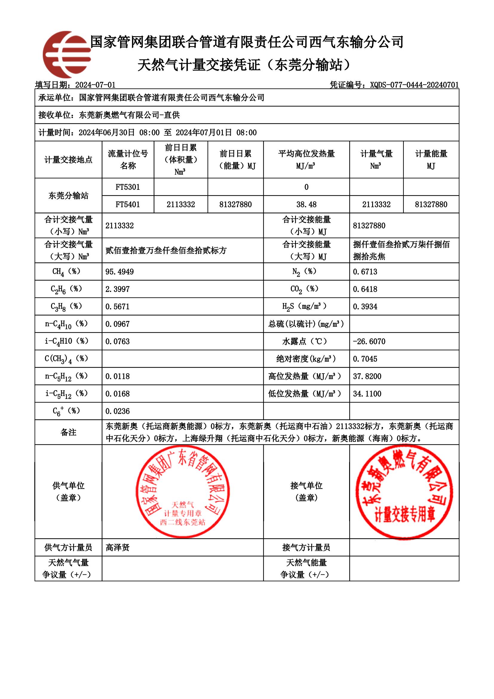 東莞新奧燃?xì)?024年7月份供氣質(zhì)量檢查報告公示