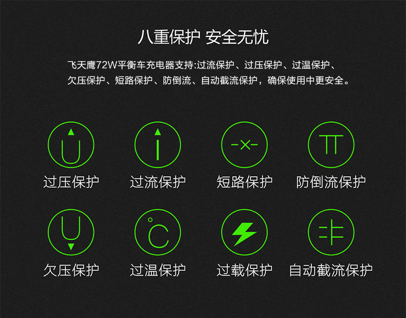 四重安全保護:過流保護 短路保護 反接保護 過壓保護。